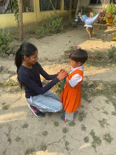 The best bit though was what happened next. We went down to join all the staff and students for a cultural show and general mingling session. The girls showcased dancing, singing, yoga and poetry – all so enthusiastically and had so much talent and humility. Tiya and Kiera joined the students in games like blindfold tag and musical statues. They also learned some Indian and Bollywood dance moves and sang along to songs played from YouTube. There was this instant connection – and although sometimes needed a bit of translating – generally everyone had this ability to work out what the game was and just go with it. The phrase I most had to translate was – “Can you please tell our Didis (older sisters – Tiya and Kiera) to come back again soon and play with us again”. Tiya and Kiera also taught the group What’s the time Mister Wolf and judged a dance competition for them. Leaving them was the hardest part as it just did not feel like enough time.