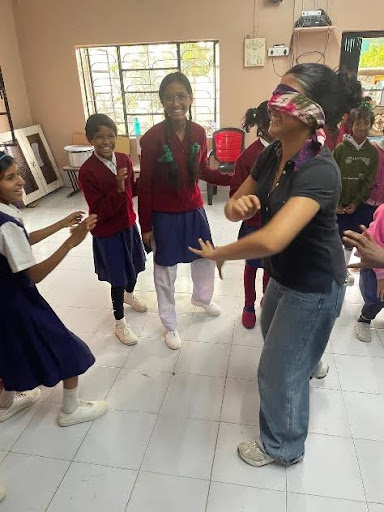 We were also whisked away to the Primary School, which is a short distance away and is a co-educational school. It has a small fee and has students from 3 years old onwards – who were so incredibly sweet and lovely. We got to witness a drama rehearsal for an upcoming Saraswati Puja (major Bengali festival) as well as play with the young kids in their playground. Highlights included needing three kids to sit on one side of the see-saw to balance one of us (!) and a barrage of kids running up to play on the slide as soon as Kiera went up there – to Tiya pushing about 12 kids on a small spinning machine and watching them scream in delight. The primary school is more dated that the high school and could do with some upgrades to the classrooms and playground. It was delightful to see how engaged and happy the children were and the focused, kind and patient energy of the teachers.