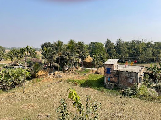 We had a four-hour journey from Kolkata to Sundarban – the van traversing through the bustling city to the outskirts full of small crowded roadside stores and houses, to farmland and greenery of the countryside. When we were closer to the school, the road became a small narrow elevated path – only suitable for bikes and walking. Either side had swamps, lakes, ponds or grass with grazing goats and cows. But in true Indian style, our van continued, sometimes we felt as though the people passing by on their bikes, autorickshaws or by foot would be bowled over by our oversized vehicle – but our driver and the pedestrians expertly manoeuvred each other without any casualties (although we felt a bit guilty and there were a few verbal arguments!).